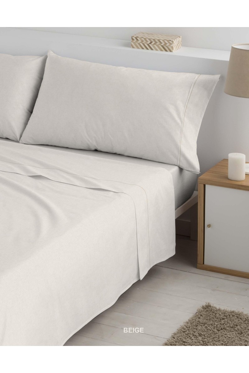 Juego de sábanas de 3 piezas en elegantes colores lisos "empolvados" para verano que incluye sábana encimera, bajera ajustable y funda de almohada. Tejido fresco, tacto suave, fácil lavado. No necesita planchado. 48% Algodón, 52% Poliéster